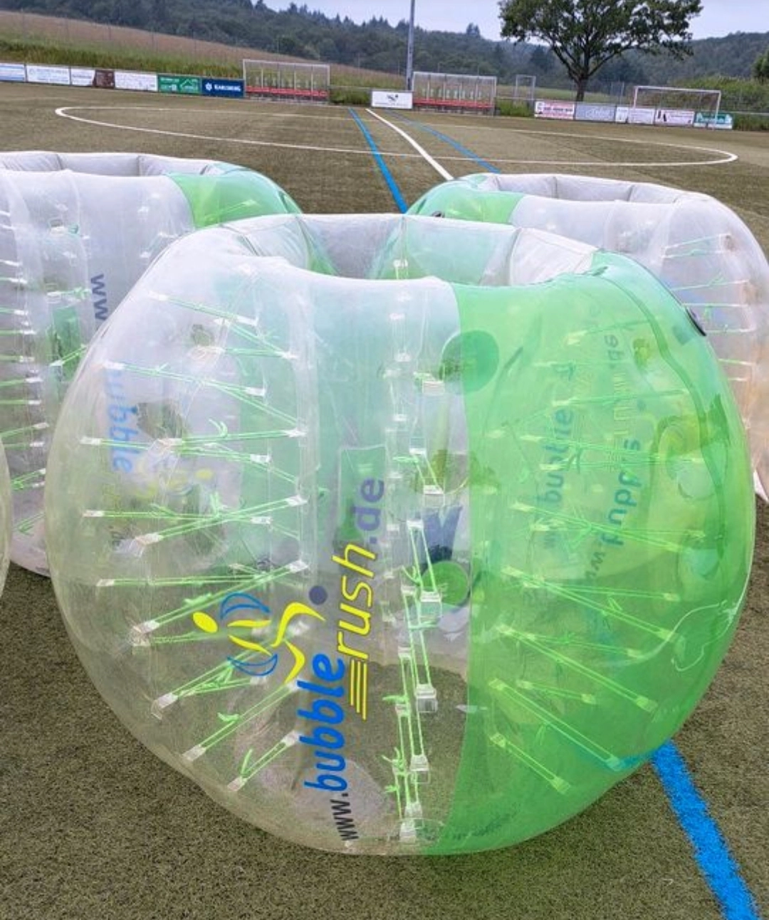 Bis zu 8 MEGA.BUBBLE Balls können gemietet werden, sodass sich spannende 4-gegen-4 oder 3-gegen-3 Matches mit einem Ersatzspieler pro Team organisieren lassen.