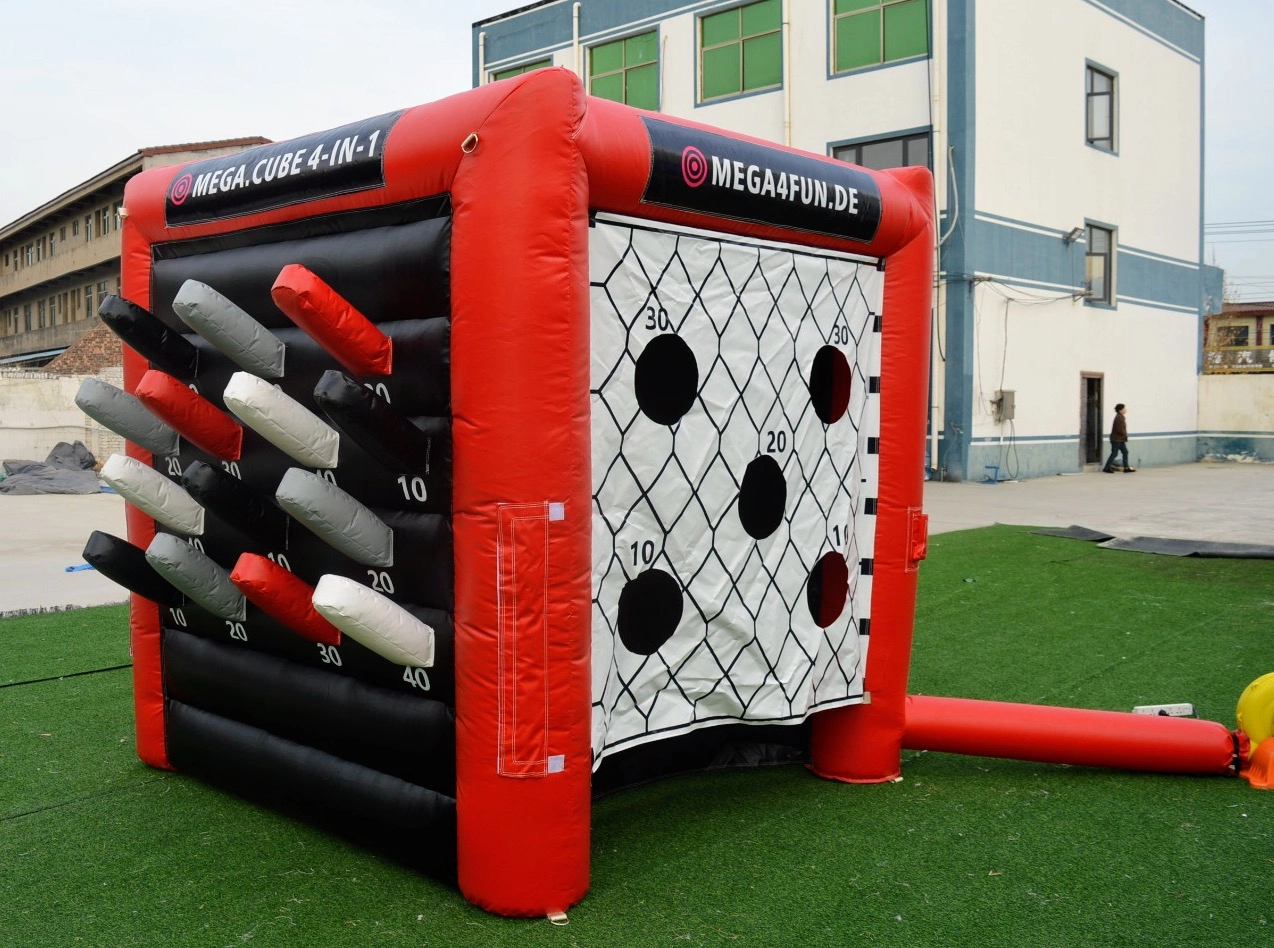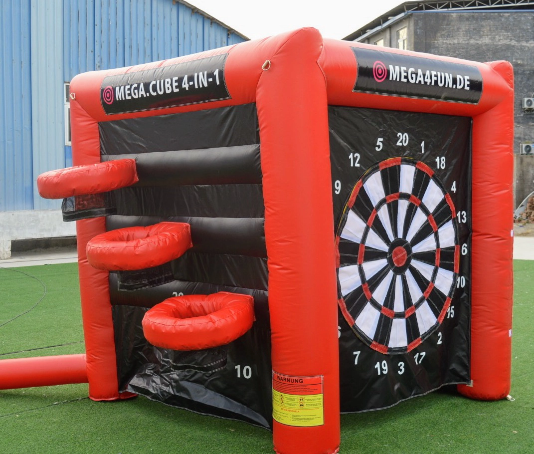 Mit seinen praktischen Maßen von 2,5 m x 2,5 m bietet der aufblasbare Spielewürfel vier abwechslungsreiche Spielstationen in einem Modul – ideal für Kinder, Familien, und selbst Erwachsene.