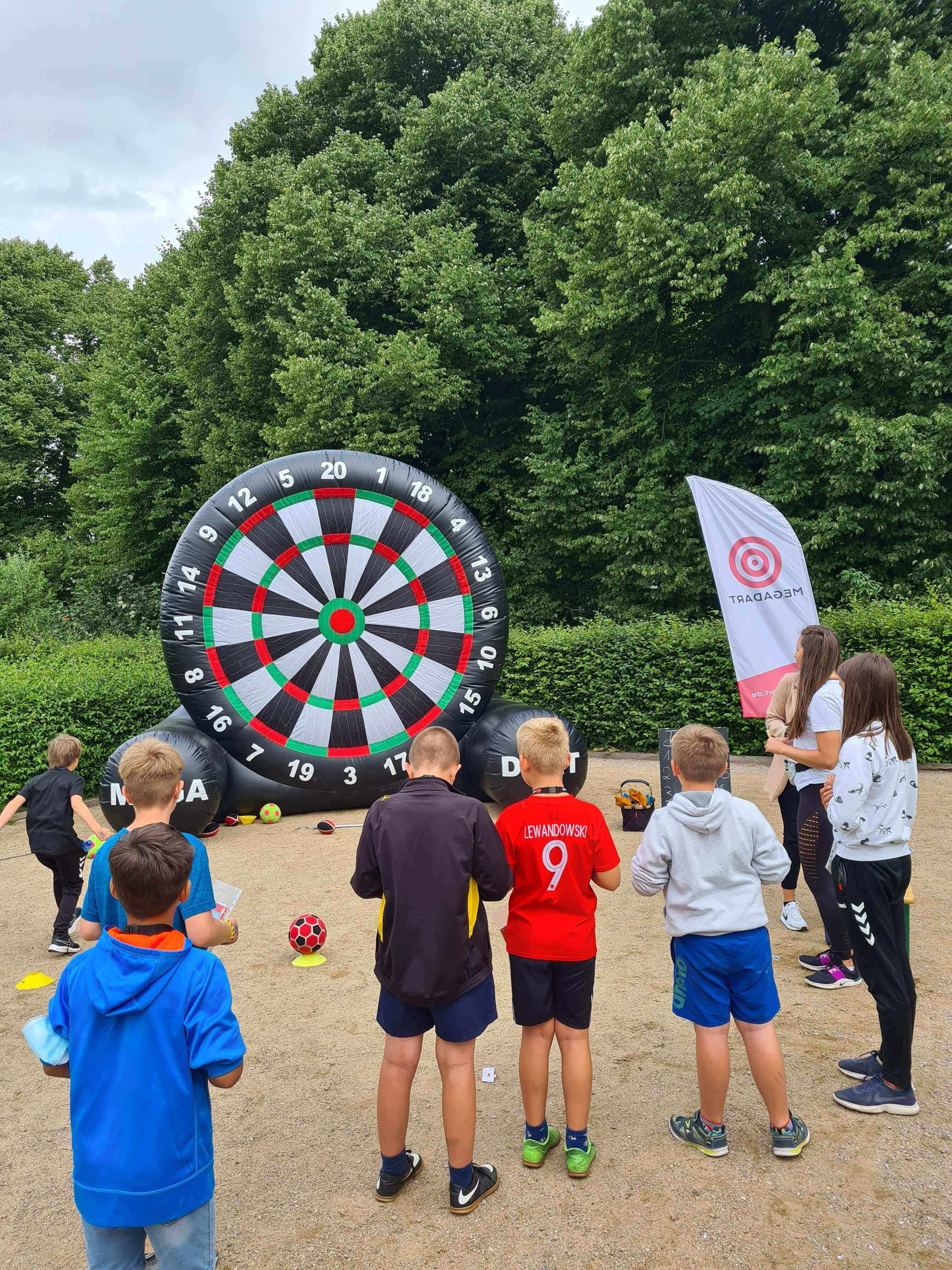 - Firmen: Unternehmen, die MEGA.DART Fußballdarts für Teambuilding-Events, Mitarbeiterevents oder Firmenfeiern mieten, um die Zufriedenheit zu stärken.