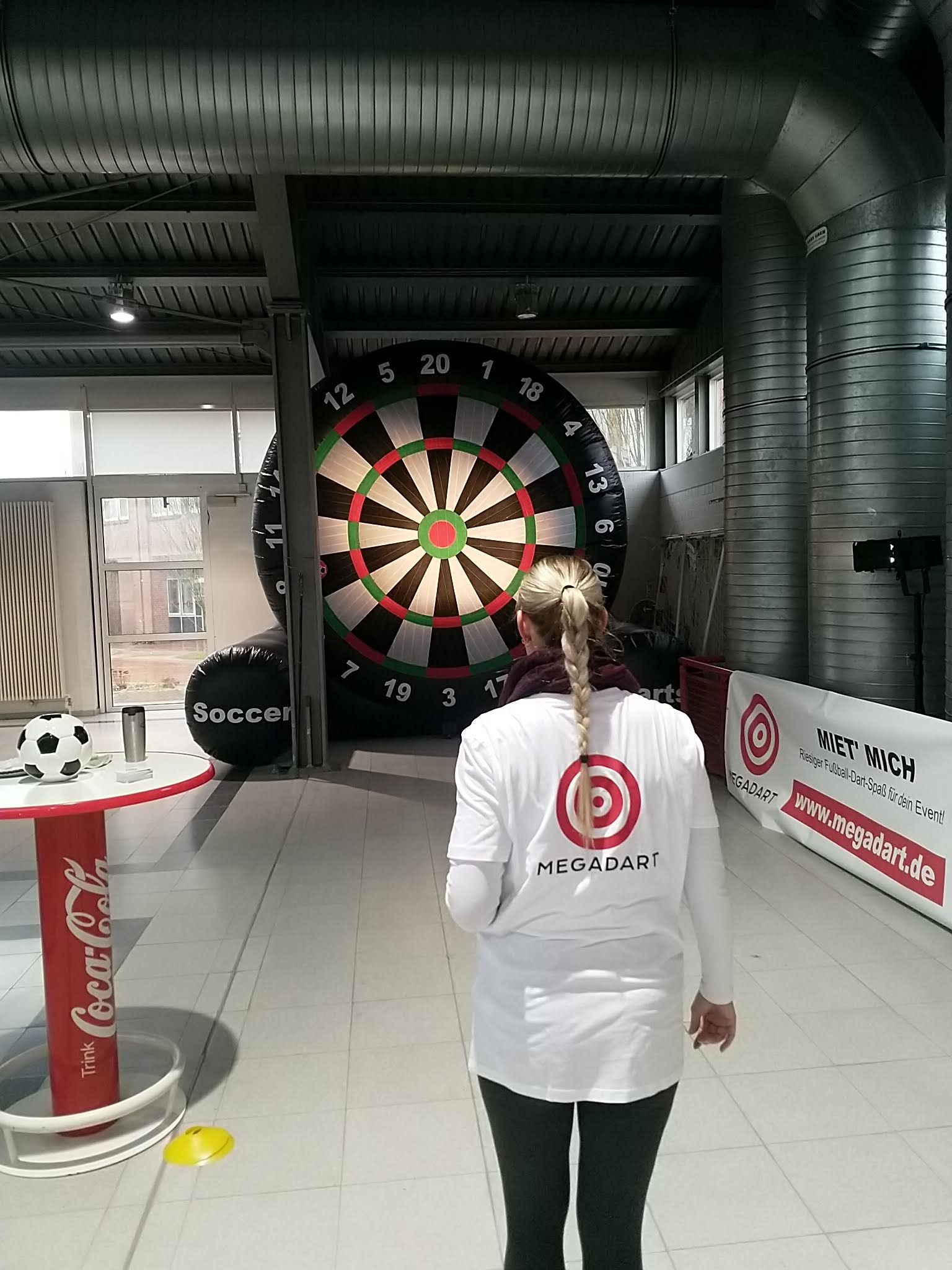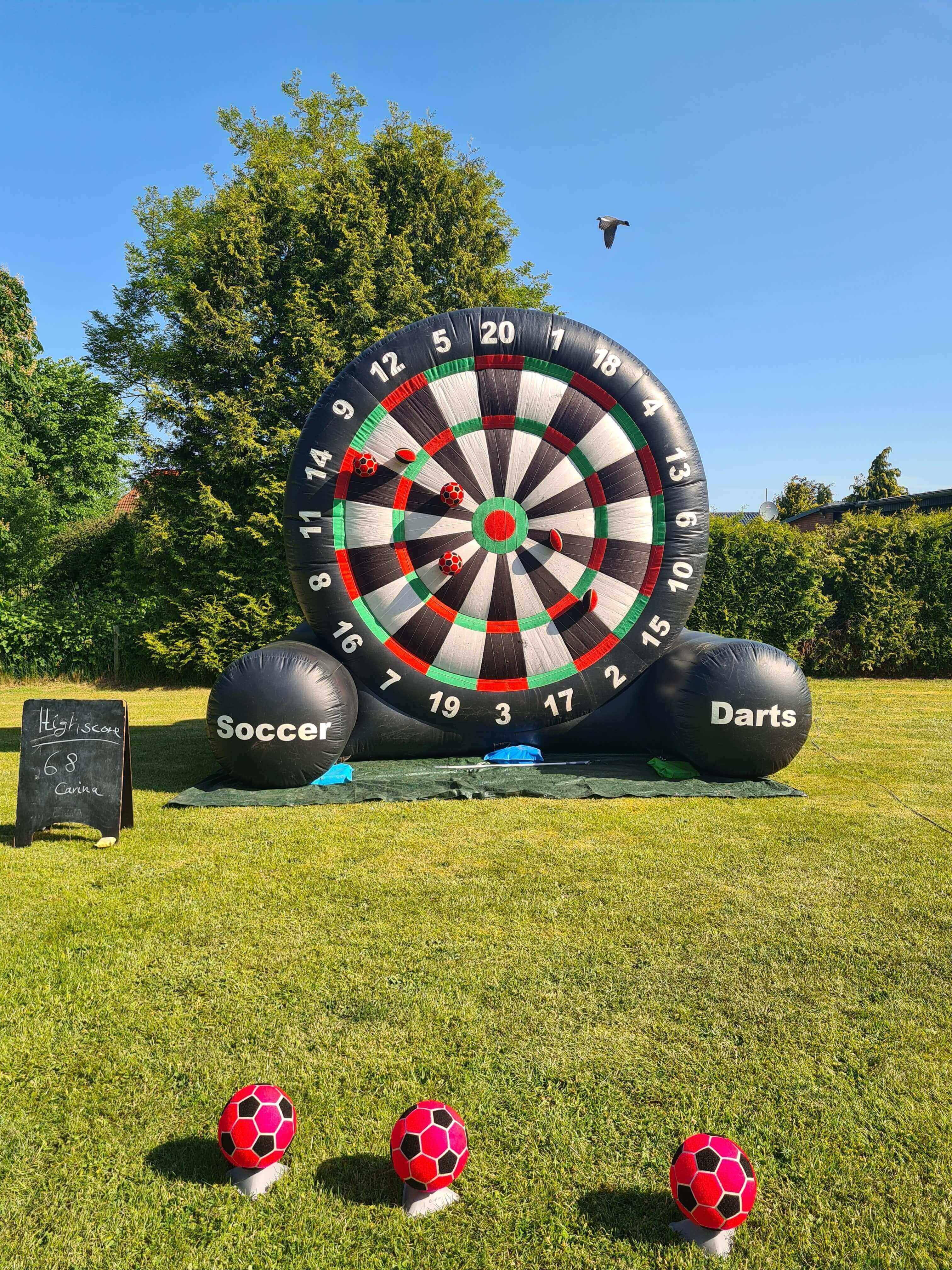 Mit einer beeindruckenden Größe von 4 x 5 x 4 Meter bietet MEGA.DART Fußballdarts eine überdimensionale Spieloberfläche, die zugleich